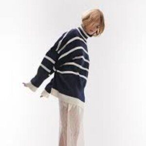 TOPSHOP Oversized Striped Turtleneck Sweater ** SZ 0-2