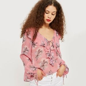 ⚡️[TOPSHOP] Pink Floral Ruffle Blouse | Size 2