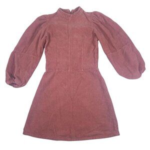 TOPSHOP Pink Mauve Corduroy Baby Doll Puff Sleeve Mini Dress US Size 2