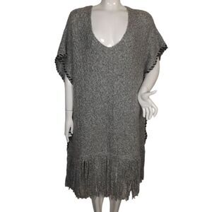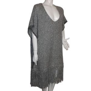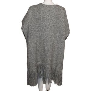 TOPSHOP Poncho/Cape/Vest, M/L, Gray, Fringe, Scoop neckline