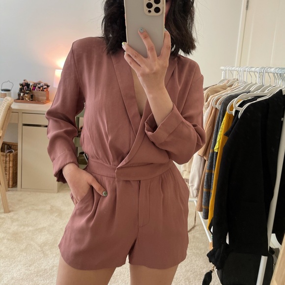 Pre owned. Long sleeves. V neck and this is a mini.✨ super pretty romper for summer!! Old rose pink color and this one has POCKETS!!😉