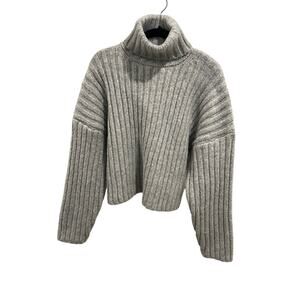 A chunky rib adds extra cozy points to a wool-kissed sweater knit to a cute, cropped length. 22"length (size Large) Turtleneck Long sleeves 95% polyester, 5% wool Machine wash, line dry Imported