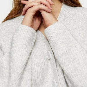 Feel the warmth of this softly ribbed cardi designed with oversized front buttons and a perfectly dipped neckline.