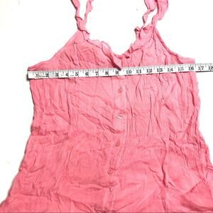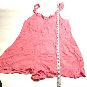Dainty, fluttery ruffles trace the neckline and straps of a light and crinkly romper with buttons down the front, smocking on the back and playful romance all around. - Front button closure - Scooped V-neck - Adjustable straps - Back elastic smocking - Approx. 22.5" length, 2" inseam (size S) - Imported
