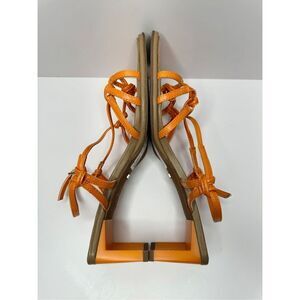 TOPSHOP Sandals Womens Size 7 Orange Nina Strippy Square Open Toe Heels New