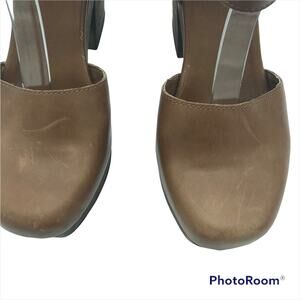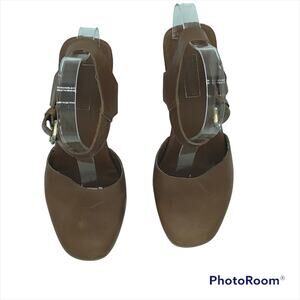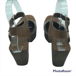 TOPSHOP Smile Tan Leather Platform Clog Style Sandals Sz 6