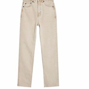 TOPSHOP Straight High Waist Raw Hem Khaki Jean EUC