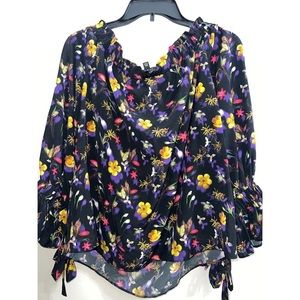 TOPSHOP TIE SLEEVE FLORAL OFF THE SHOULDER BLOUSE - SIZE 8