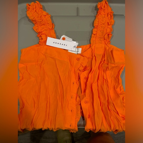 Sleeveless tank- TOPSHOP Size: 10- NEW chrome/ neon Orange color