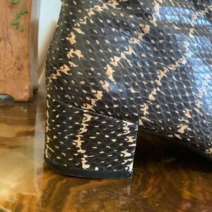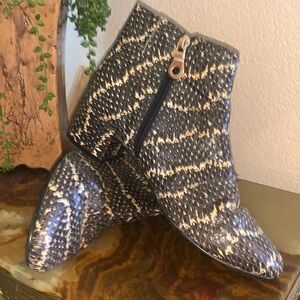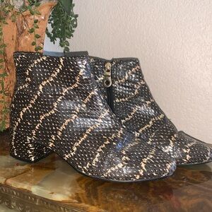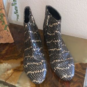 TOPSHOP Vegan Ankle Boots Grey & Cream Snake Block Heel, inside Zipper. 38 EUC
