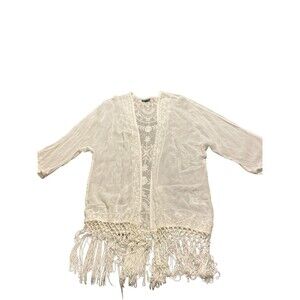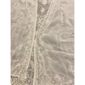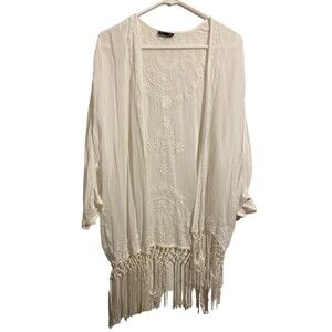 'TOPSHOP' WHITE EMBROIDERED‎ KIMONO STYLE FRINGED JACKET SIZE S