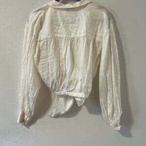 TOPSHOP White Tie Front Long Sleeve Button Down Blouse Shirt Size 10