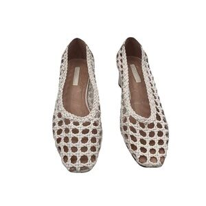 TOPSHOP White Woven Ballerina Square Toe Block Heel Shoes Size 35 Women’s