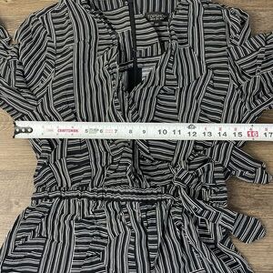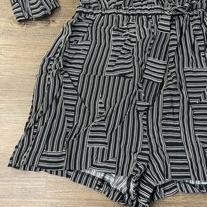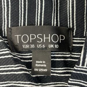 TOPSHOP Women’s Belted Black and White Striped Playsuit Jumpsuit, size 6. In excellent used condition- just wrinkled. See pictures for measurements and fabric content.
