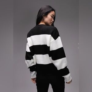 Women's Black and white large stripe crew neck sweater from TOPSHOP, size S. Oversized for a small.
