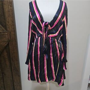 TOPSHOP Women's Stripe Knot Front Long Sleeve Mini Dress Size 6 Multi NWT