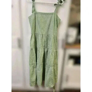 TOPSHOP Womens‎ Tie Shoulder Strap Pintuck Midi Dress In Sage Green Size 12
