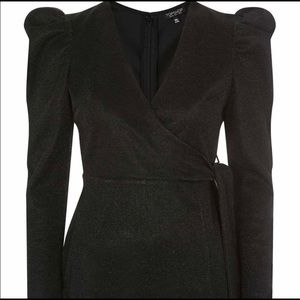 TOPSHOP black sparkly dress belted puff long sleeve Size US 6