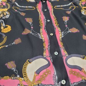 TOPSHOP blouse horsebit gold chain tassel button up polyester shirt 6