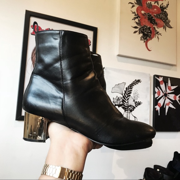 Gently used great condition TOPSHOP booties with gold heel. Super comfortable. Zip on side