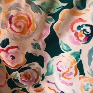 TOPSHOP floral deep v neck dress with flare skirt green pink and gold size 4