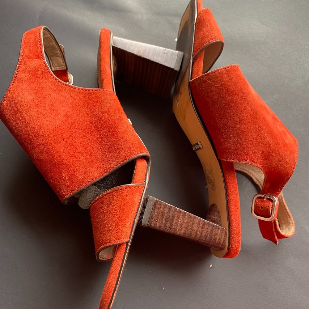 Very cool slingback from TOPSHOP orange leather marked 39. No fading stains scuffs heel 2 1/4