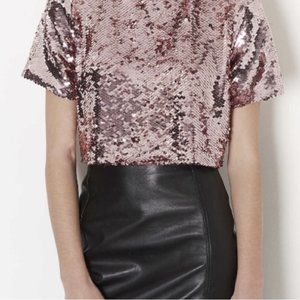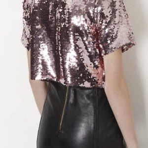Fantastic blush pastel pink sequined top from TOPSHOP marked 4 no missing sequins stains fading tear mannequin in pictures 34-24-36