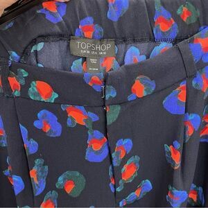 TOPSHOP Abstract Floral Print Navy Pants Size 6