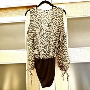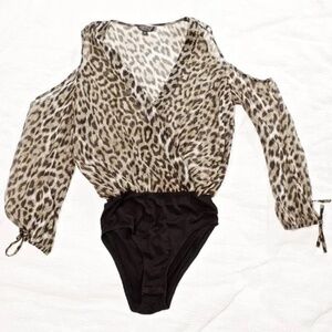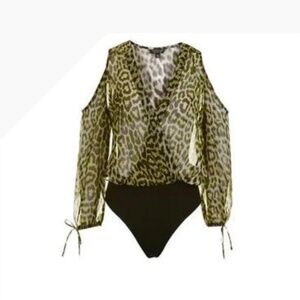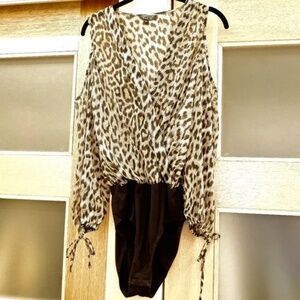 TOPSHOP~LEOPARD ANIMAL PRINT & BLACK COLD SHOULDER BODYSUIT~SIZE 6 MEDIUM