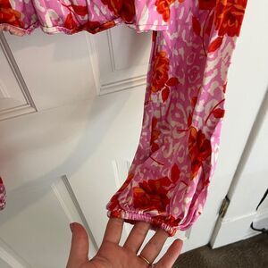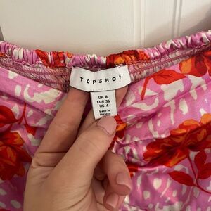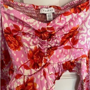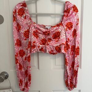 TOPSHOP Long Sleeve Satin Red and Pink Floral Crop Top Size 4