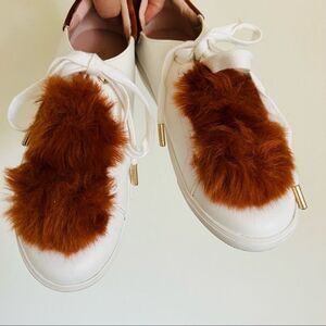 Topshop Women's White Lace Up Pom Pom Sneakers. Size 7. Previously loved, no flaws and some signs of wear on sole.