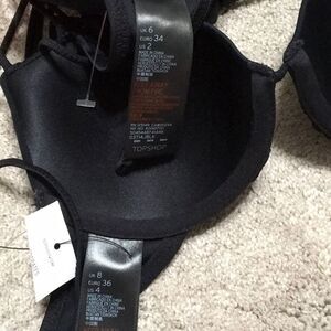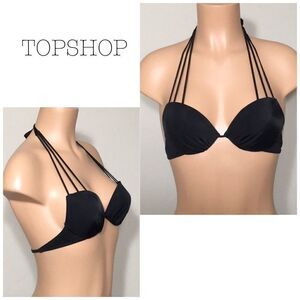 Top shop black underwire padded bikini top. Multi strap at the neck and multi strap in the back. The size 4 has a partial tag and the size 2 lost its tag.