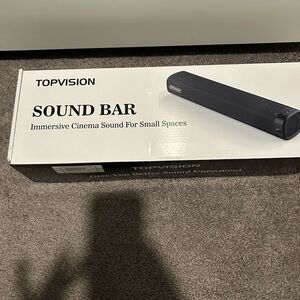 TOPVISION sound bar in sleek black. Perfect for immersive cinema sound in small spaces.