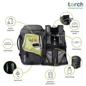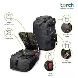 TORCH 40L Travel Backpack for Men - Large Carry On - Black NWT