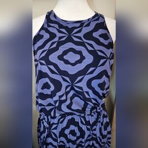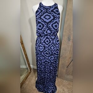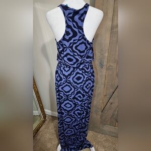 TORI RICHARD Sleeveless Racerback Max Dress In Blue/black Pattern. Size Small