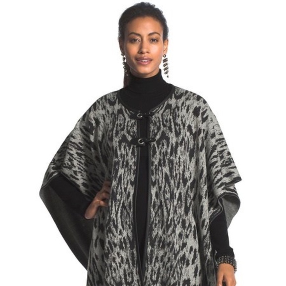 A fall must-have: this leopard-print ruana. The unique toggle closures can be worn in front or off the shoulder.