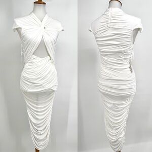 TORN BY RONNY KOBO Heidi Ruched Cutout Bodycon Midi Dress in White NWT