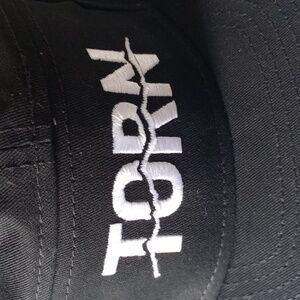 TORN Hat Cap Strap Back Panel Black White Embroidered Logo Men's