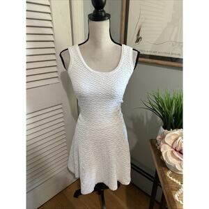 TORN RONNY KOBO Womens Dress Small White Textured Stretch Knit Fit Flare Preppy