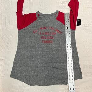 Holiday gift Christmas girly plus curvy flattering baseball tee knit top heather gray red color block casual tomboy street wear weekend lounge large grande L