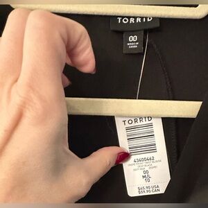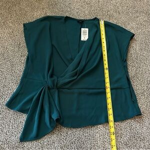The TORRID 00 0X XL Black Twist Front Surplice Top is a stylish and flattering blouse. (Torrid 00 they call 10/12) Made from polyester crepe fabric, this short sleeve top features a V-neckline with a twist accent and a side zip closure. The regular fit and vibrant teal color make it a versatile and fashionable addition to any wardrobe. Perfect for pairing with jeans or dress pants, this top from Torrid is a must-have for any fashion-forward woman looking for a chic and comfortable option. New with tag! Retail $46