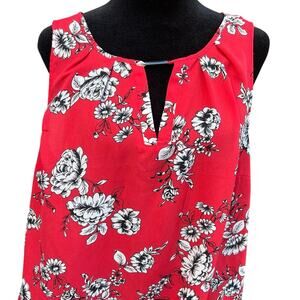 Like new! TORRID 00 ( size 10) Georgette keyhole tank. Women’s coral with black /white floral tankLightweight! Sleeveless, V neck with metal bar across top of V. Slightly gathers around neck. Rounded hem, back is 1-2 longer than front. VERY PRETTY!! 716te 2