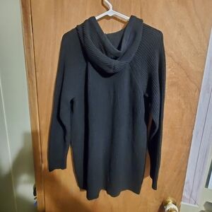 TORRID 1(14/16). BLACK SWEATER KNIT HOODIE. RIBBED LACE UP RAGLAN SLEEVES TUNIC.