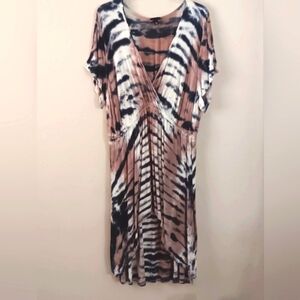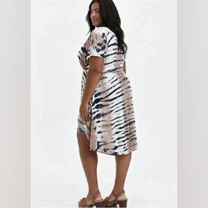 TORRID 2 Gauzy Surplice Tie Dye High Low Tunic Top 2X Tan Black Cream
