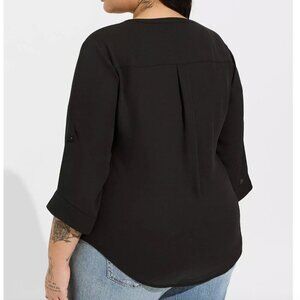 TORRID 2 Plus Size Harper 3/4 Sleeve Pullover Blouse Solid Black Georgette Work