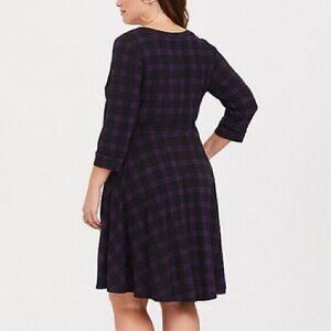 TORRID 2 Plus Size Purple Plaid Studio Wrap Dress Black Surplice 3/4 Sleeve 2X