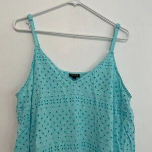 TORRID 2 Plus Size Sophie Eyelet Swing Cami Aqua Blue Sleeveless Tank Blouse 2X