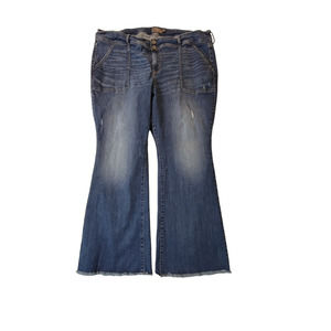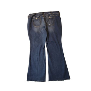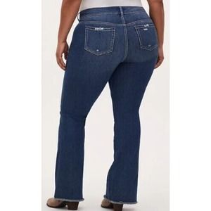 TORRID 24R Mid Rise Stretch Flare Vintage Style Raw Hem Denim Jeans