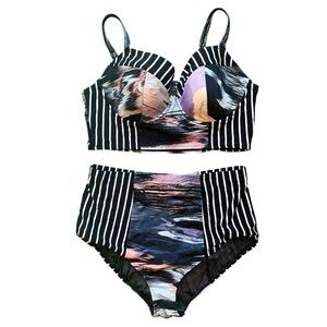 TORRID 2-Piece Swimsuit High Waist Tropical Perfect Stripe Size 2 US 18-20