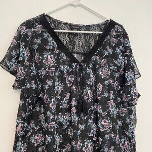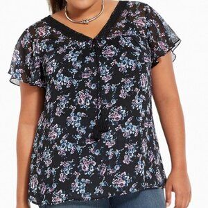 TORRID 3 Plus Size Floral Print Chiffon Crochet Inset Top Black Blue Purple Boho
